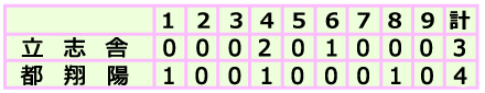クラブ 野球部 平成20年度秋季東京都高等学校野球大会 強豪 佼成学園に9回逆転負け 2008年10月13日 平成20年度秋季東京都高等学校野球大会が始まりました。1回戦は都立翔陽高校と対戦し、4対3で辛勝しました。 2回戦は強豪 佼成学園と対戦し3対5で敗れてしまいました。応援ありがとうございました。 1回戦の結果 2回戦の結果 post