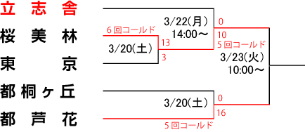 クラブ 野球部 強豪桜美林高校に完敗 平成22年度 春季東京都高等学校野球大会 2010年3月23日 初回の7点が大誤算!夏に向かって頑張ります。 -2回戦- 1 2 3 4 5 6 7 8 9 計 立 志 舎 0 0 0 0 0 0 桜 美 林 7 0 0 2 1x 10 post