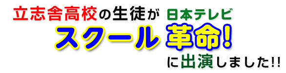 立志舎高校の生徒が日本テレビ他で放送されている「スクール革命!」に出演しました。「新旧比べて新発見!何でも今昔 パート2」の「昔のお笑いは若い世代に伝わるのか?」というテーマで「昭和のいる・こいる」さんが立志舎高校の生徒の前でネタを披露して下さいました。さて、生徒たちのリアクションは!? (2012年5月27日OA)