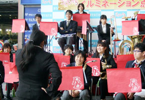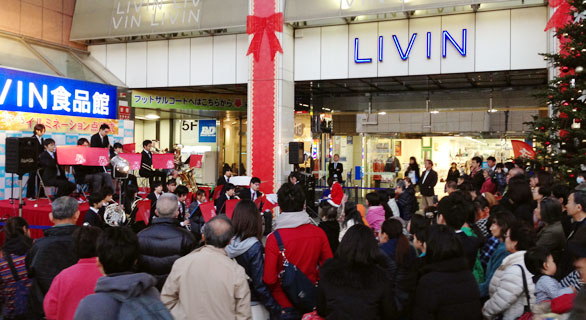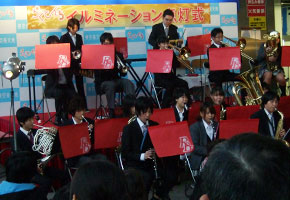 2013年11月16日(土)、錦糸町駅前の楽天地ビルの広場にて行われた「イルミネーション点灯式」でクリスマスメドレーを演奏しました。 司会者のカウントダウンと同時に錦糸町のイルミネーションが一斉に点灯しました。 多くの人に見守られながら演奏することができ、とても楽しかったです。
