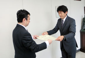 表彰式は、東京スカイツリーが間近にみられる立志舎高校で行われ、日本語検定委員会の高瀬真一常務理事から、立志舎高校に授与されました。