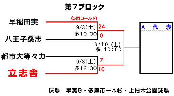 9月10日(土)には強豪 早稲田実業高校とブロック代表決定戦が行われます。多摩市一本杉球場で10時に試合開始です!