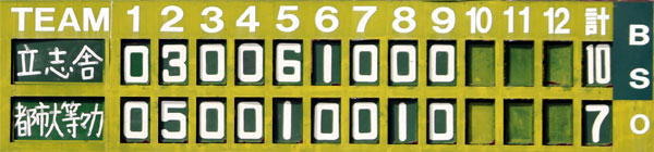 試合は2回に3点を先制、その裏すぐに5点を奪われ逆転を許しましたが5回に6点を挙げ逆転。さらに相手を突き放しました。その後は守備での踏ん張りを見せ10対7の打撃戦を制しました。