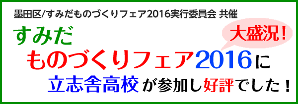 2016年11月5日(土)・6日(日)、すみだ中小企業センターにて子ども向けイベント『すみだものづくりフェア2016』が開催されました。立志舎高校は美術同好会、ボランティア同好会、チアリーディング部、ダンス同好会が参加しました。