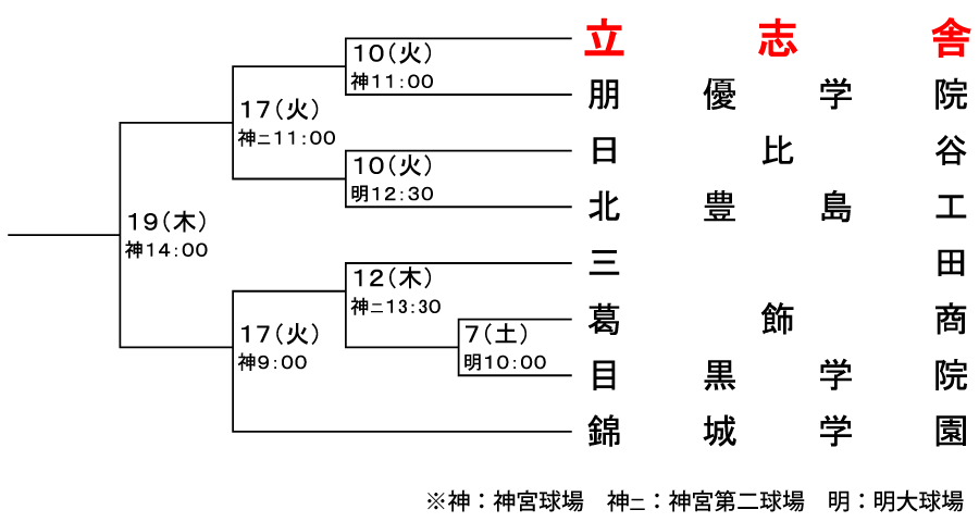 第100回全国高等学校野球選手権記念大会 東東京大会の、立志舎高校野球部の初戦が平成30年7月10日(火)明治神宮野球場にて行われます。初戦の相手は朋優学院高校です。最後まで全力で戦いますので、在校生のみなさん、地域のみなさんの力強い応援をよろしくお願いします。