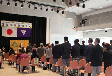11月17日(土)、すみだリバーサイドホールにて「平成30年度墨田区環境改善功労者・功労団体区長感謝状贈呈式」が行われました。