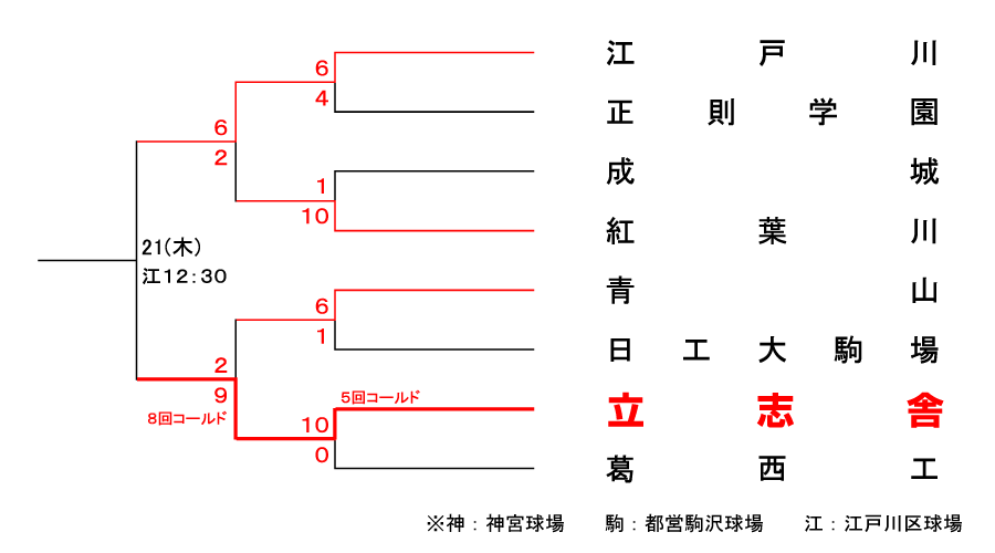 第104回全国高等学校野球選手権大会 東東京大会の、立志舎高校野球部の3回戦が令和4年7月18日(月・祝)都営駒沢球場にて行われました。都立青山高校と対戦し9対2で勝利しました。次戦は7月21日(木)12:30から都立江戸川高校と江戸川区球場で対戦です。最後まで全力で戦いますので、在校生のみなさん、地域のみなさんの力強い応援をよろしくお願いします。
