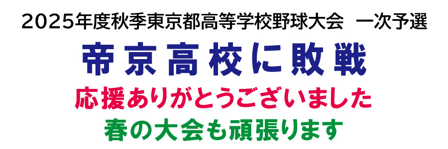 令和7年(2025)年度秋季東京都高等学校野球大会一次予選での立志舎高校野球部の1回戦が9月15日(月)帝京高校の球場にて行われました。対戦相手は帝京高校です。最後まで全力で戦いましたが、力及ばず0対10(5回コールド)で敗戦となりました。みなさん応援ありがとうございました。春の大会に向けて頑張りますので、応援よろしくお願いします!
