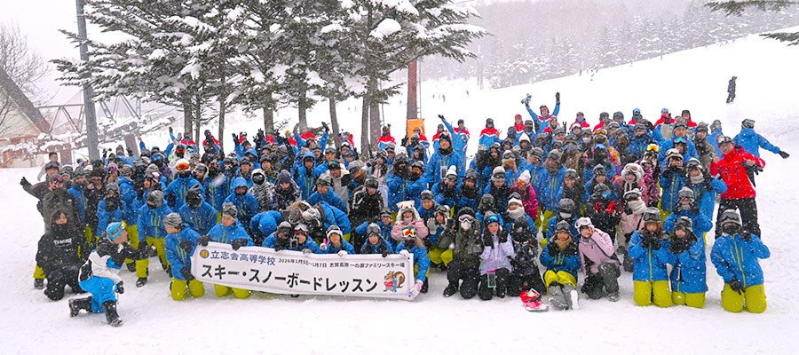 令和8年1月5日から7日まで、新春恒例のスキー・スノーボードレッスンが志賀高原 一の瀬ファミリースキー場で行われました。今年は今までとは違うゲレンデ、違うホテルに宿泊したので、生徒も教員もフレッシュな気持ちで出発しました。雪がちらつくタイミングもありましたが、天候にも恵まれ、楽しみながら実習をすることができました。今年は立志舎高校スキー・スノーボード実習史上初のナイターも実施!ライトアップされて昼とは全く違った景色を楽しみました!。