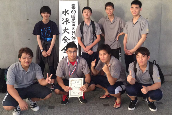学校にプールがないため区の施設やスイミング施設を借りて練習に励んでいます。