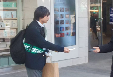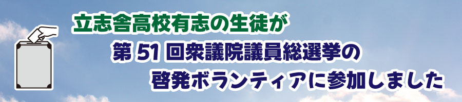1月31日に本校有志の生徒が、第51回衆議院議員総選挙の啓発ボランティアに参加をしました。錦糸公園と錦糸町駅を中心に、ポケットティッシュや紙風船などを配布して投票を呼びかけました。活動を通じて生徒自身も主権者意識の向上、投票の重要性を認識することができました。
