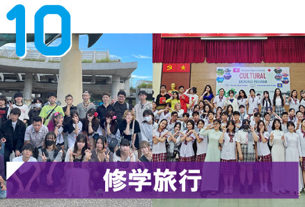 本校では、修学旅行や総合体育祭、文化祭などのさまざまなキャンパス行事があります。勉強面だけでなく、ゼミの仲間やクラスの友人たちと大いに交流できるのが、これらの学校行事です。また土曜コースの皆さんも平日コースの皆と一緒に参加することができますので、クラスやコースの枠を超えて友人の輪を広げることもできます。多彩なキャンパス行事で大いに盛り上がりましょう。また、クラブ活動などでも高校生活を謳歌し楽しみましょう。