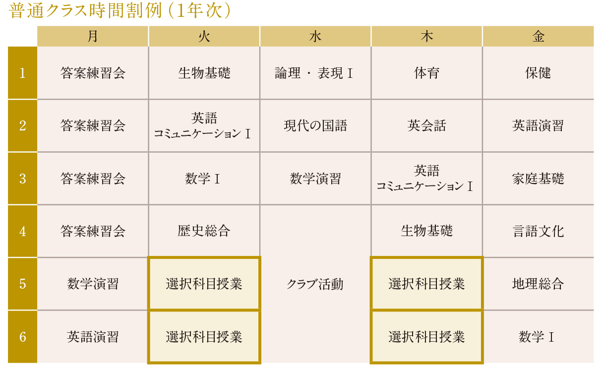 【普通クラスのみ開講】 自分のやりたいこと、進路にあわせて自分の時間割を自由に選択
