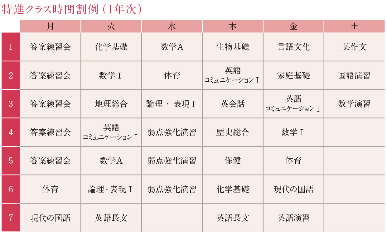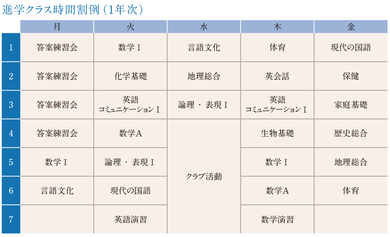 ・国立文系・私立理系・私立文系などの進路別カリキュラム